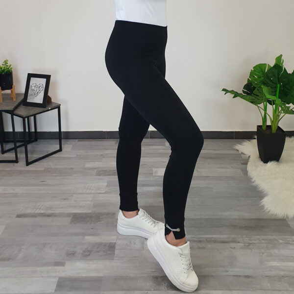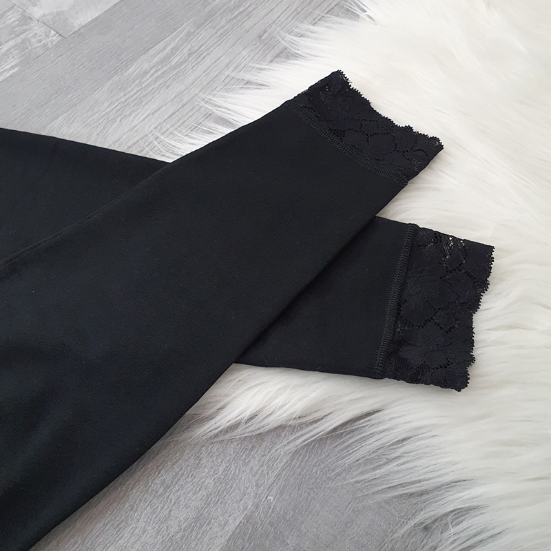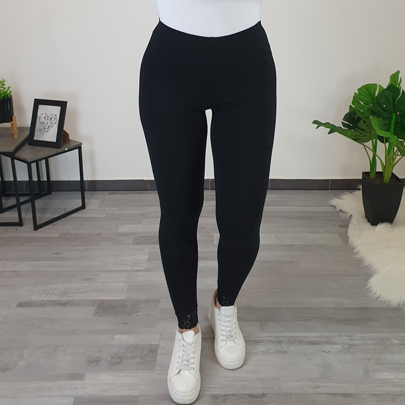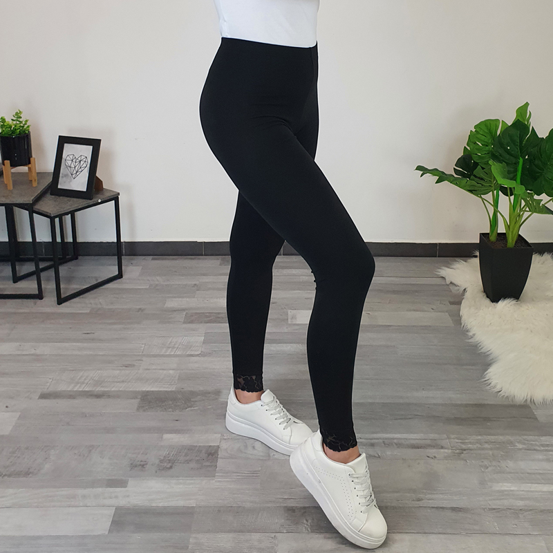 Elegantne pamučne tajice Flora u crnoj boji. Tajice imaju viši struk, hlače su duge i uske. Izrađene su od visokokvalitetnog elastičnog pamuka, s dodanom prekrasnom čipkom na krajevima obje nogavice, što tajicama daje elegantan izgled. Tajice ćete moći savršeno iskombinirati uz omiljenu ljetnu odjeću. Izrađuju se od veličina 36 do 50.