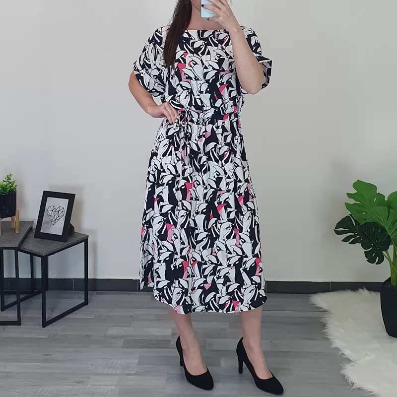 Ženska ljetna haljina Kenny S. Haljina napravljena je od viskoze, pogodna je za toplije dane. Haljina ima kratka rukava, kroj je širi.
