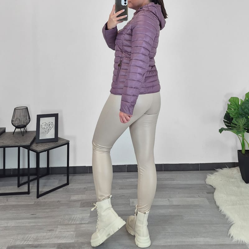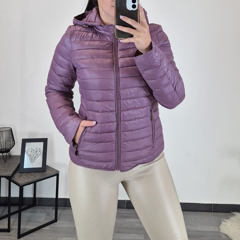 Ženska tanja jakna u ljubičastoj boji. Jakna ima kapuljaču koja se po želji može skinuti. Zakopčava se ljubičastom zatvaračem po cijeloj duljini. Bočna džepa imaju također patentne zatvarače. Jakna je dostupna u veličinama od S do XXL.