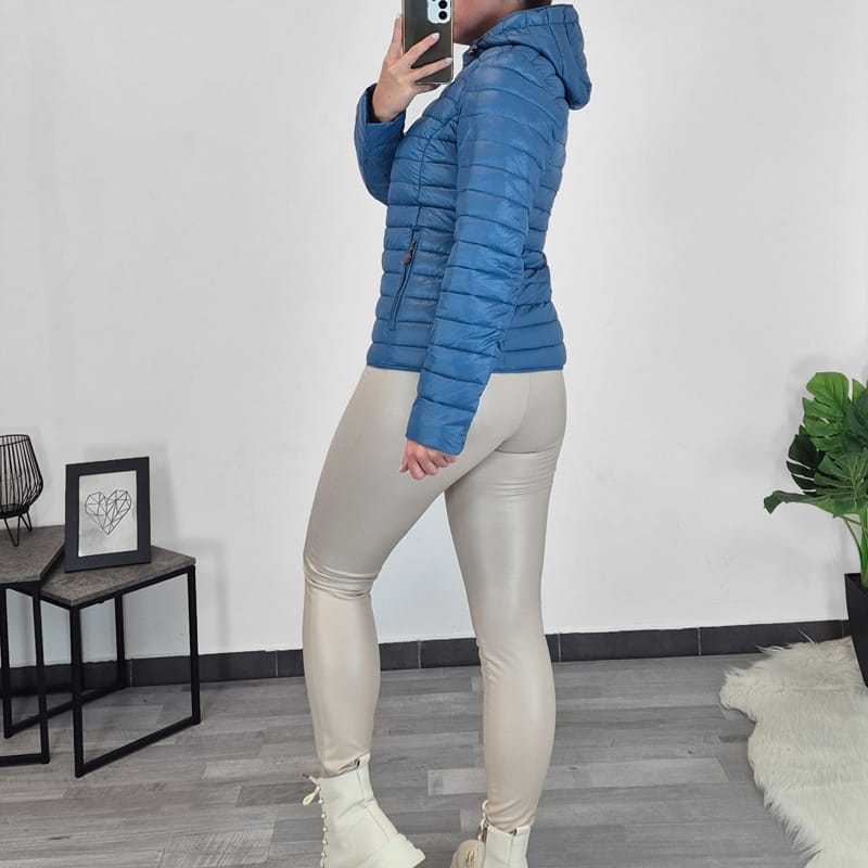 Ženska tanja jakna u plavoj boji. Jakna ima kapuljaču koja se po želji može skinuti. Zakopčava se plavim zatvaračem po cijeloj duljini. Bočna džepa imaju također patentne zatvarače. Jakna je dostupna u veličinama od S do XXL.