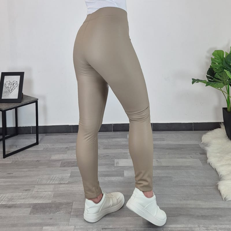 Ženske tajice u izgledu kože s toplom podstavom. Tajice su bež boje, struk je viši i širi te savršeno pristaje uz tijelo. Izrađene su od elastičnog materijala i vrlo su udobne za nošenje. Tajice su odlična kombinacija uz našu omiljenu odjeću.