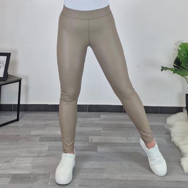 Ženske tajice u izgledu kože s toplom podstavom. Tajice su maslinaste boje, struk je viši i širi te savršeno pristaje uz tijelo. Izrađene su od elastičnog materijala i vrlo su udobne za nošenje. Tajice su odlična kombinacija uz našu omiljenu odjeću.