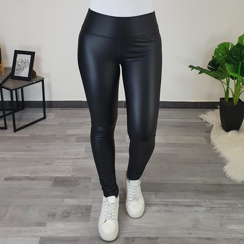 Ženske tajice u izgledu kože. Tajice su u crnoj boji, struk je viši i širi te savršeno pristaje uz tijelo. Izrađene su od elastičnog materijala i vrlo su udobne za nošenje. Tajice su odlična kombinacija uz našu omiljenu odjeću.