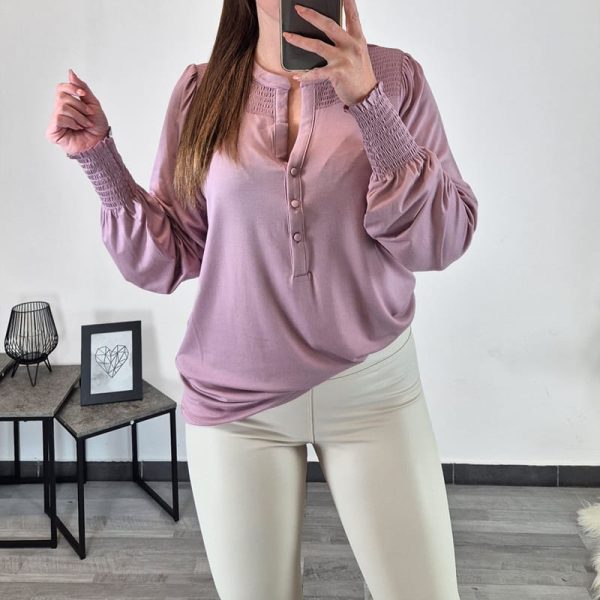 Ženski elegantna majica u ružičastoj boji. Majica je izrađena od lyocel materijala i je vrlo mekana na dodir i ugodna za nošenje. Dodani su ukrasni gumbi sa strane, od vrata do ramena, također u ružičastoj boji.
