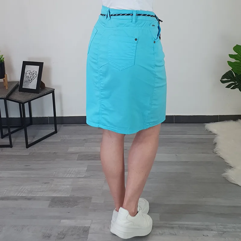 Ženska suknja Kenny S. u plavoj boji. Suknja napravljena je od kvalitetnog i tanjeg pamuka, pogodna je za toplije dane.