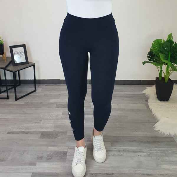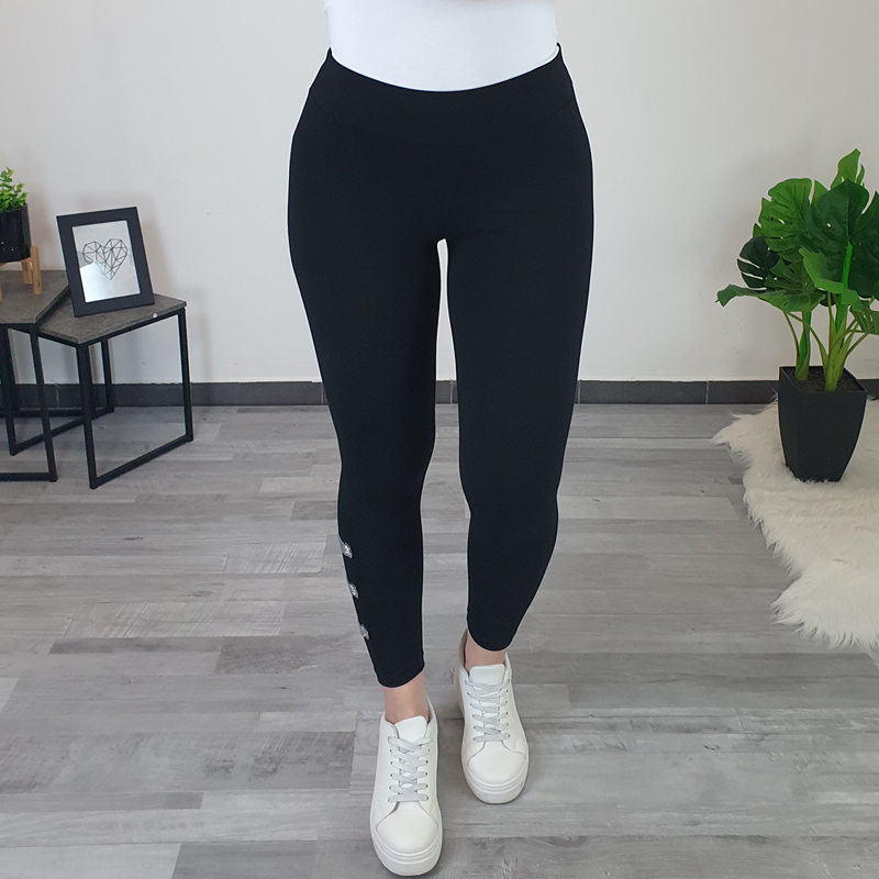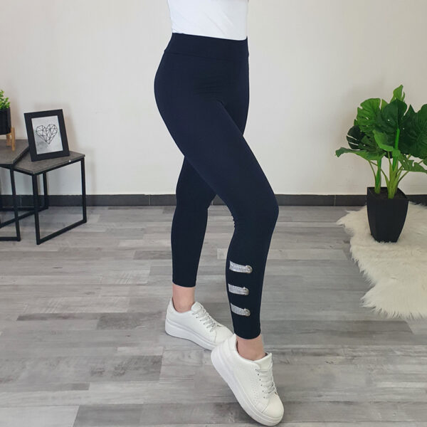 Ženske tajice Boja u crnoj boji. Tajice su dužine 7/8, na lijevoj nogavici su dodane tri srebrne mreže i tri srebrne vrpce, čime se tajice izdvajaju od ostalih. Tajice se mogu kombinirati sa sportskim tenisicama kao i s ljetnim cipelama.