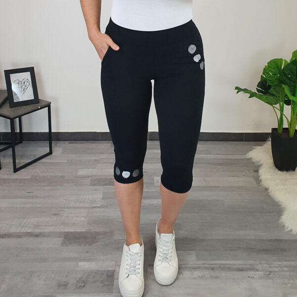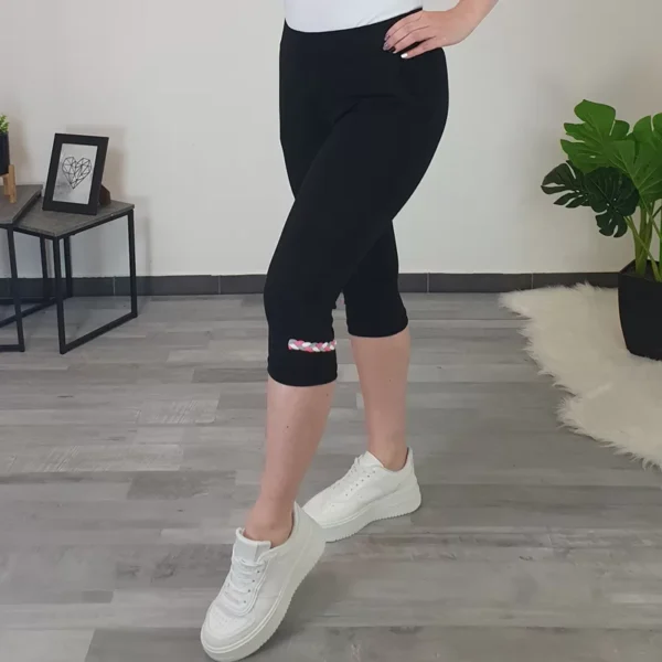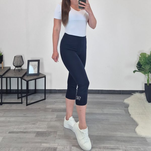 Ženske pamučne tajice u bijeloj boji. Tajice imajo viši struk, nogavice su uske in 3/4 dužine. Na kraju nogavica dodan je leptir. Tajice dostupne su od S/36 do 3XL/46.