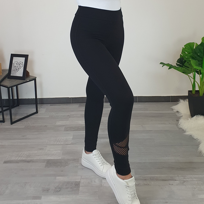 Modne pamučne tajice Agica u crnoj boji. Tajice imaju viši struk, nogavice su uske i dugačke. Ukrašene su crnom mrežicom na lijevoj strani nogavica što im daje zanimljiv izgled. Izrađene su od visokokvalitetnog pamuka i zadržavaju oblik prilikom nošenja. Dostupne su od veličine 36 do 46.