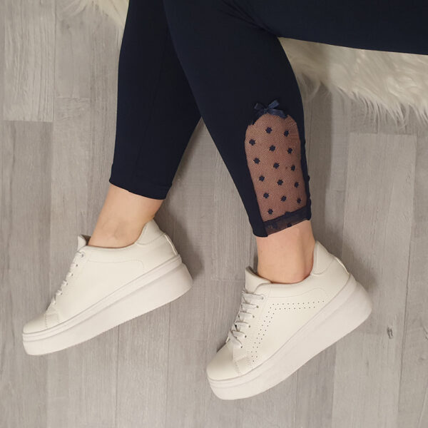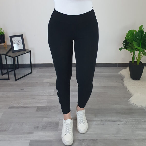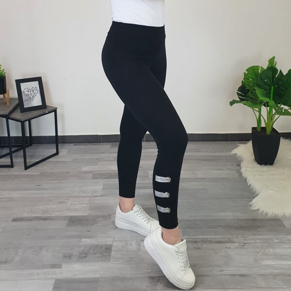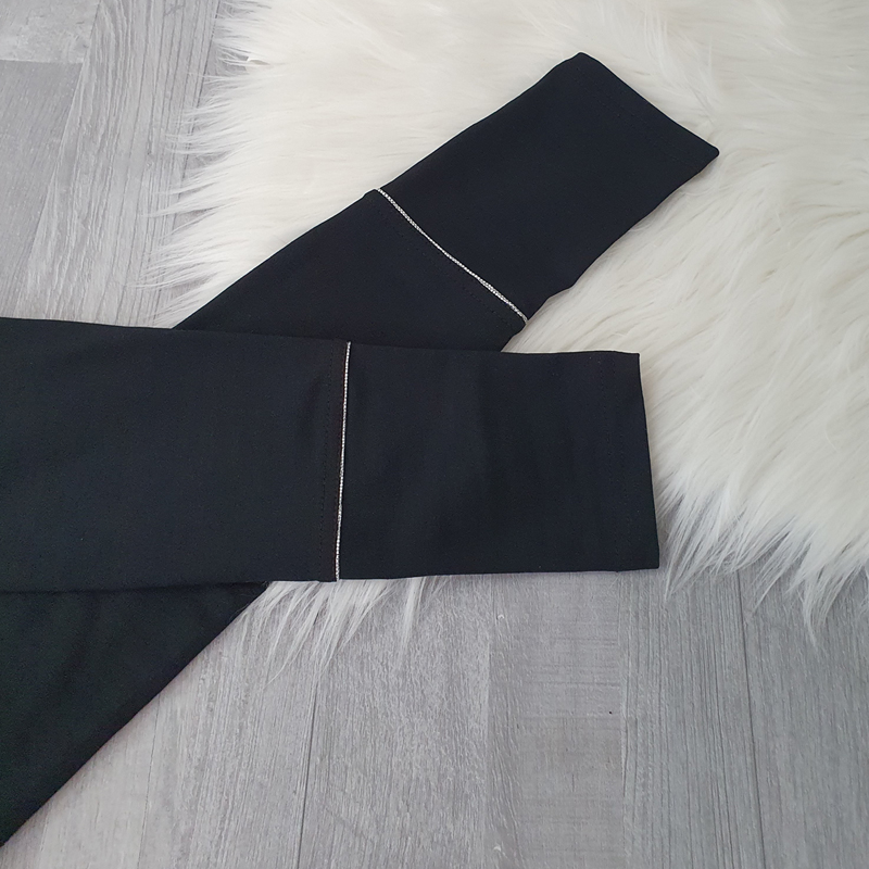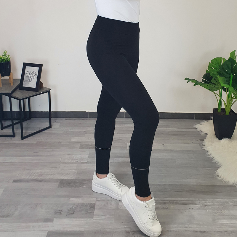 Ženske pamučne tajice Britka u crnoj boji. Tajice su izrađene od kvalitetnog pamuka, mekane su i elastične. Tajice imaju elastiku u struku. Na donjem dijelu nogavica dodan je srebrni šav koji oživljava tajice. Dostupne su od veličine 36 do 50.