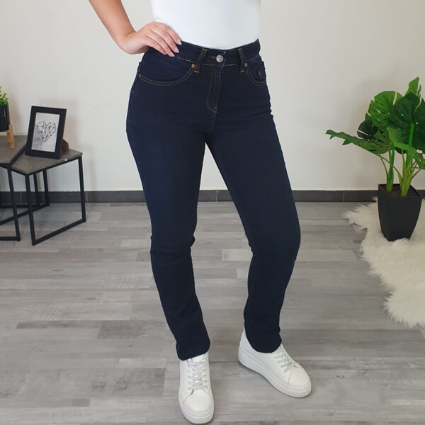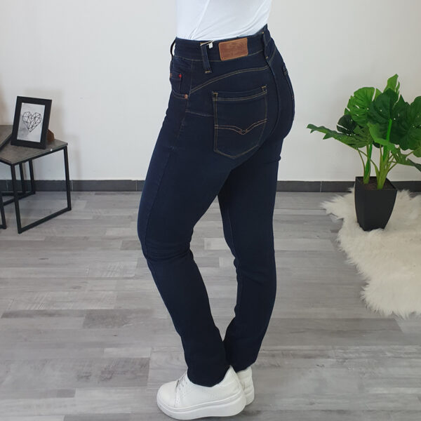 Ženske traperice u tamnoj jeans boji. Hlače imajo elastiku u struku, izrađene su od visokokvalitetnog pamuka te su vrlo elastične i udobne za nošenje. Stražnji dio hlača dizajniran je tako da lijepo ističe vašu figuru. Hlače su dostupne u veličinama od S do XXXXL.